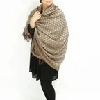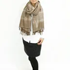 非常に大きなショールサイズで、広げて羽織れば上半身をすっぽりと覆うことができます。縦横の長さも十分にあるため、巻き方の自由度が広がります。程よいボリューム感と立体感を簡単につくることができるため、一巻きでこなれた印象になります。面積もあるので、真夏の室内での冷房対策や膝掛けとしても使いやすくなっています。