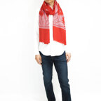 美しさが違う、選び抜かれた大人のカシミヤストール。鮮やかなレッドカラーに主張しすぎない煌びやかな刺繍が映える一枚です。