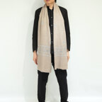 バランスの良い大判サイズで、巻きでも羽織でもどちらも使いやすいストールです。特に羽織は全面に施された刺繍が美しく輝き、サッとあしらうだけでゴージャスな雰囲気に変化します。