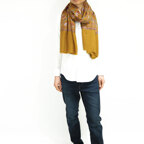 195cm×100cm大判ショールサイズで、巻きでも羽織でもどちらも使いやすいストールです。特に羽織は全面に施された刺繍が美しく輝き、サッとあしらうだけでゴージャスな雰囲気に変化します。横幅が特に長いのでドレスや着物などの羽織物としても重宝します。