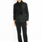一巻きで決まる、新ベーシックストール。深みのあるブラックカラーでファッションによらず合わせやすくなっています。