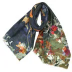 大人になるほどにこだわりたい、ストールのお洒落。多色使いの美しいフラワーモチーフ。巻き方によってさまざまな表情を楽しめます。