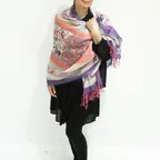 暖かく華やかなお出かけストールをお探しのあなたへ。立体感のある刺繍とレイヤード生地、鮮やかな色使いで、首元にアクセントをもたらします。