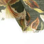 繊細なフラワーモチーフが奏でるエレガンス。品格のウールシルクストール。他にはないデザインで装いのアクセントに最適です。