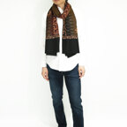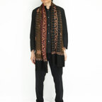 バランスの良い大判サイズで、巻きでも羽織でもどちらも使いやすいストールです。特に羽織は全面に施された刺繍が美しく輝き、サッとあしらうだけでゴージャスな雰囲気に変化します。