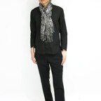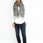スタンダートな大判サイズで巻いても羽織っても、どちらも使いやすいタイプです。特に羽織は全体の印象がパッと華やかに、エレガントな雰囲気に変化します。