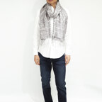 スタンダートな大判サイズで巻いても羽織っても、どちらも使いやすいタイプです。特に羽織は全体の印象がパッと華やかに、エレガントな雰囲気に変化します。