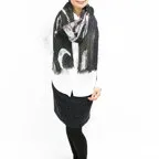 独創的なデザインが描かれた個性的なショール。ゆるっと巻くだけでおしゃれな人になれる一枚です。