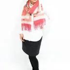 スタンダードな大判サイズで、首に巻くことはもちろん、室内でのひざ掛けにも、肩から羽織る使い方もできます。特に羽織りは、パッと華やかにエレガントな雰囲気に変わります。上半身を覆えるので、着ている服を気にせず合わせることができます。忙しい朝もコーディネートを気にする必要はありません。