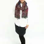 スタンダードな大判サイズで、首に巻くことはもちろん、室内でのひざ掛けにも、肩から羽織る使い方もできます。特に羽織りは、パッと華やかにエレガントな雰囲気に変わります。上半身を覆えるので、着ている服を気にせず合わせることができます。忙しい朝もコーディネートを気にする必要はありません。