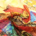 このストールは薄くて軽い生地です。使わないときは小さく折りたたみ、バッグに収納できます。外出先でも邪魔にならず、持ち運びにも便利です。