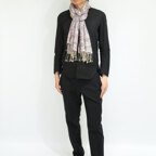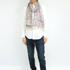スタンダートな大判サイズで巻いても羽織っても、どちらも使いやすいタイプです。特に羽織は全体の印象がパッと華やかに、エレガントな雰囲気に変化します。