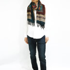 スタンダードな大判サイズで、首に巻くことはもちろん、室内でのひざ掛けにも、肩から羽織る使い方もできます。特に羽織りは、パッと華やかにエレガントな雰囲気に変わります。上半身を覆えるので、着ている服を気にせず合わせることができます。忙しい朝もコーディネートを気にする必要はありません。