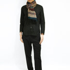 飽きずに巻ける、レイヤードストール。カラフルな立体刺繍も手伝って、ゆるっと巻くだけでアクセント効果が高くなっています!