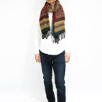 スタンダードな大判サイズで、首に巻くことはもちろん、室内でのひざ掛けにも、肩から羽織る使い方もできます。特に羽織りは、パッと華やかにエレガントな雰囲気に変わります。上半身を覆えるので、着ている服を気にせず合わせることができます。忙しい朝もコーディネートを気にする必要はありません。