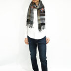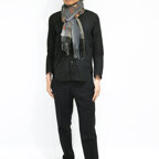 スタンダードな大判サイズで、首に巻くことはもちろん、室内でのひざ掛けにも、肩から羽織る使い方もできます。特に羽織りは、パッと華やかにエレガントな雰囲気に変わります。上半身を覆えるので、着ている服を気にせず合わせることができます。忙しい朝もコーディネートを気にする必要はありません。
