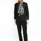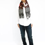 色と柄を掛け合わせてアクセントをつけた、存在感が抜群のデザイン。巻き方によって表情の変化も楽しめます。