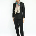 生地感よりカジュアルな普段使いにも、少しフォーマルなシーンでも使いやすいタイプです。スタイルや場所を問わず合わせることができる優れたストールです。