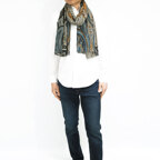 ダイナミックで躍動感のあるペイズリー柄ストール。ゆるっと余裕のあるシルエットが大人の格好よさを引き出します!