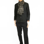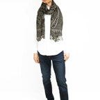 スタンダードな大判サイズで、首に巻くことはもちろん、室内でのひざ掛けにも、肩から羽織る使い方もできます。特に羽織りは、パッと華やかにエレガントな雰囲気に変わります。上半身を覆えるので、着ている服を気にせず合わせることができます。忙しい朝もコーディネートを気にする必要はありません。