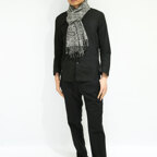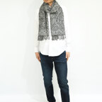 スタンダードな大判サイズで、首に巻くことはもちろん、室内でのひざ掛けにも、肩から羽織る使い方もできます。特に羽織りは、パッと華やかにエレガントな雰囲気に変わります。上半身を覆えるので、着ている服を気にせず合わせることができます。忙しい朝もコーディネートを気にする必要はありません。