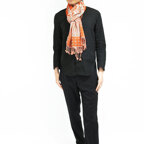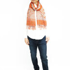 スタンダードな大判サイズで、首に巻くことはもちろん、室内でのひざ掛けにも、肩から羽織る使い方もできます。特に羽織りは、パッと華やかにエレガントな雰囲気に変わります。上半身を覆えるので、着ている服を気にせず合わせることができます。忙しい朝もコーディネートを気にする必要はありません。