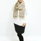 スタンダードな大判サイズで、首に巻くことはもちろん、室内でのひざ掛けにも、肩から羽織る使い方もできます。特に羽織りは、パッと華やかにエレガントな雰囲気に変わります。上半身を覆えるので、着ている服を気にせず合わせることができます。忙しい朝もコーディネートを気にする必要はありません。