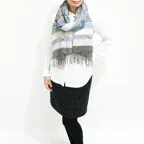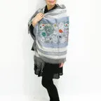 スタンダードな大判サイズで、首に巻くことはもちろん、室内でのひざ掛けにも、肩から羽織る使い方もできます。特に羽織りは、パッと華やかにエレガントな雰囲気に変わります。上半身を覆えるので、着ている服を気にせず合わせることができます。忙しい朝もコーディネートを気にする必要はありません。