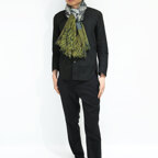 大判の長方形で、端面はナチュラルな断ち切り加工を施しています。どんな巻き方をしても表情豊かでお洒落な印象になります。また、折りたたんで使えばスッキリとシャープなシルエットになります。