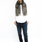 透け感のある生地で見た目以上にスッキリまとまります。アウターの中にも収めやすく、インにアウトに扱いやすいストールです。
