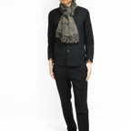 一見してその上質さがわかる、薄手仕立てのウールストール。落ち着いた色使いで合わせやすくなっています。