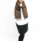 小粋な配色のカラーのペイズリーストール。ゆるっと巻くだけで毎日のコーデがお洒落な雰囲気に変わる一枚です。