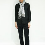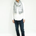スタンダートな大判サイズで巻いても羽織っても、どちらも使いやすいタイプです。特に羽織は全体の印象がパッと華やかに、エレガントな雰囲気に変化します。
