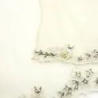 手仕事で製作をしているため、稀にステッチ部分のほつれやビーズが外れる恐れがございます。また、生地や刺繍部に薄い汚れが付着する可能性がございます。