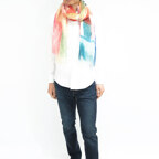 大判サイズのストールで肩から羽織る使い方もできます。春夏の日除けや室内の冷房対策としても使いやすくなっています。