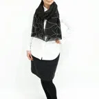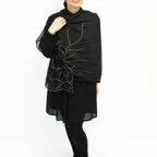 スタンダードな大判サイズと軽やかな質感で、巻きだけでなく羽織でも合わせやすいタイプです。トップスがほのかに透けて見え、上品な印象を与えてくれます。