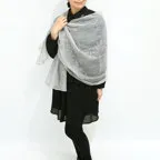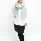 スタンダードな大判サイズと軽やかな質感で、巻きだけでなく羽織でも合わせやすいタイプです。トップスがほのかに透けて見え、上品な印象を与えてくれます。