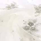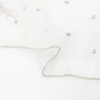ステッチ刺繍にはパールの輝きを放つビーズを散りばめており、フェミニンで華やかに仕上がっています。そのため、特にフォーマルな場面やパーティーシーンで大活躍します。結婚式やパーティー、会食や演奏会などにも使いやすく、ドレスやワンピースとの相性も抜群です。