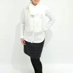 スタンダードな大判サイズと軽やかな質感で、巻きだけでなく羽織でも合わせやすいタイプです。トップスがほのかに透けて見え、上品な印象を与えてくれます。