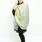 サイズの大きなショールサイズでゆるっと巻くだけで立体感のある表情を作り出すことができます。また羽織では上半身をすっぽりと覆うことができ、野外での日除け対策や冷房対策としても重宝します。