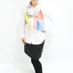 大人の魅力3割アップのカラフル・ストール。多色使いでどこを見せるか考えながら巻くのが楽しい一枚です♪