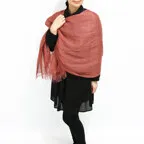大判サイズのストールで肩から羽織る使い方もできます。春夏の日除けや室内の冷房対策としても使いやすくなっています。