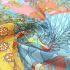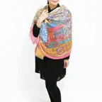 カラフルかつ独創的なデザインが光るストール。難しいテクニックなしで”巻くだけで素敵に見える”一枚です。