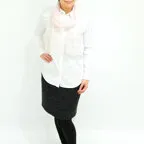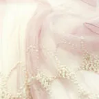 難しいテクニックなしで”巻くだけで素敵に見える”一枚。優しい色使いと清楚なパール&刺繍が魅力の一枚です。