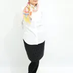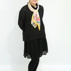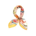 小ぶりなスクエアサイズで、アスコットタイのようにシャツやブラウスの中におさめて使うこともできます。室内でも巻いたままでいられるので使いやすくなっています。