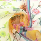 着こなしに花を咲かせる、華やかスカーフ。素材は風に揺れるふわっと軽いコットンシルク素材です。