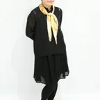 小ぶりなスクエアサイズで、アスコットタイのようにシャツやブラウスの中におさめて使うこともできます。室内でも巻いたままでいられるので使いやすくなっています。