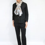 モダンなペイズリーモチーフを描いたファッショナブルなリネンストール。どんな巻き方をしてもお洒落な印象になります!