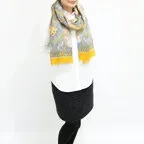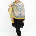 大判サイズのストールで肩から羽織る使い方もできます。春夏の日除けや室内の冷房対策としても使いやすくなっています。