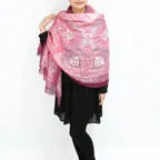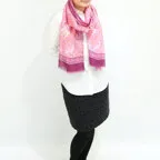 大判サイズのストールで肩から羽織る使い方もできます。春夏の日除けや室内の冷房対策としても使いやすくなっています。
